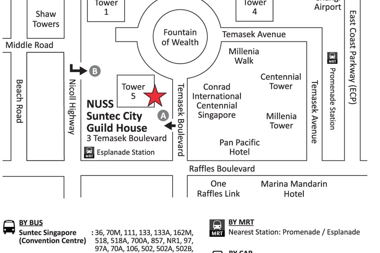 Suntec City is a bustling hub in Singapore's downtown, offering a mix of shopping, dining, and entertainment. At its heart is the Fountain of Wealth, recognized as one of the world's largest fountains. Just a short walk away, you can explore the Esplanade – Theatres on the Bay, known for its unique architecture and vibrant arts scene. Nearby, the Singapore Flyer offers panoramic views of the city. For those interested in history and culture, the National Museum and Fort Canning Park are also within easy reach. Whether you're into shopping, sightseeing, or simply soaking in the city's energy, Suntec City's location makes it a convenient starting point